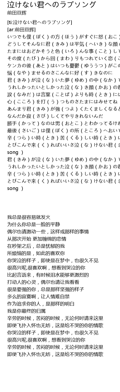 泣けない君へのラブソング Qi Jun Lyrics Follow Lyrics